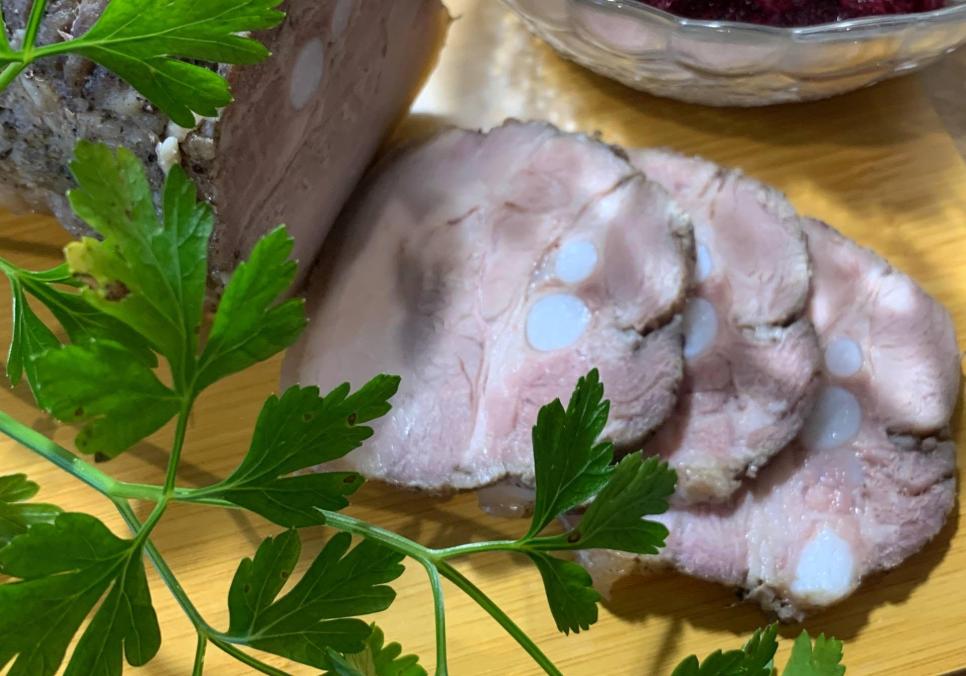 шматок грудинки свинячої, сіль, мелений чорний перець, паприка, часник, соєвий соус.