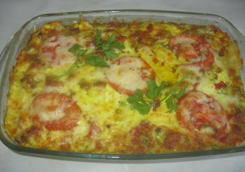 (для заливки) 3 яйця, 2 скл. молока, 2 ст. л. борошна, 2 стебла зеленої цибулі, сіль і мелений чорний перець до смаку.