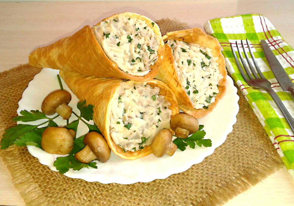 Вафельні конуси з квасолево-грибною начинкою