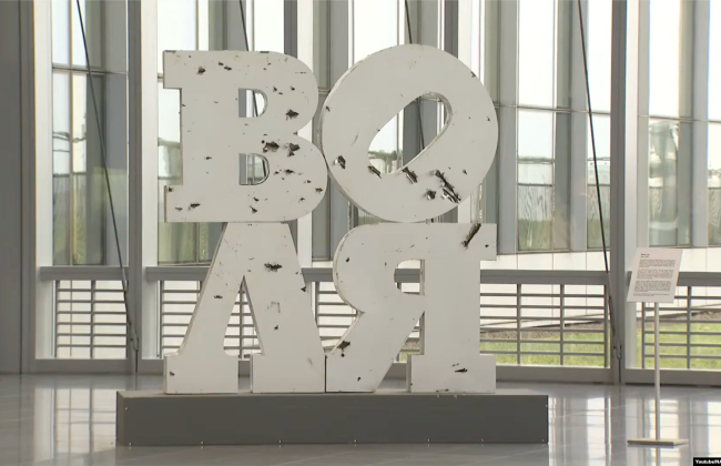 У штаб-квартирі НАТО в Брюсселі розмістили інсталяцію зі словом «Воля», складеним із обстріляних літер із назви села в Херсонській області, яке спершу було окуповане Росією, а згодом звільнене українськими Збройними силами. Тільки актуальне: читайте SUD.UA у Telegram